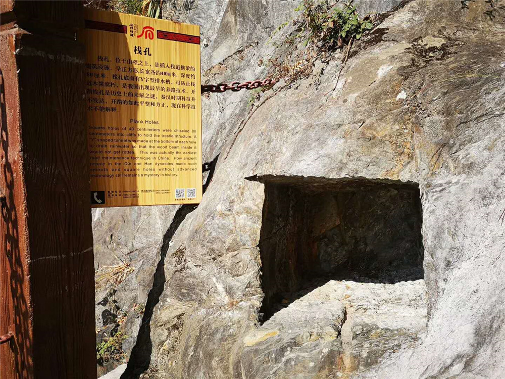 褒斜道在未修棧道之前僅為谷道,其絕險(xiǎn)處須攀緣而行,艱難辛勞,不可言狀。至戰(zhàn)國(guó)時(shí)期秦昭襄王使范睢為相,在路經(jīng)的懸崖絕壁間穴山為孔,插木為梁,鋪木板聯(lián)為棧閣,接通道路,此后褒斜道才成為驛道。