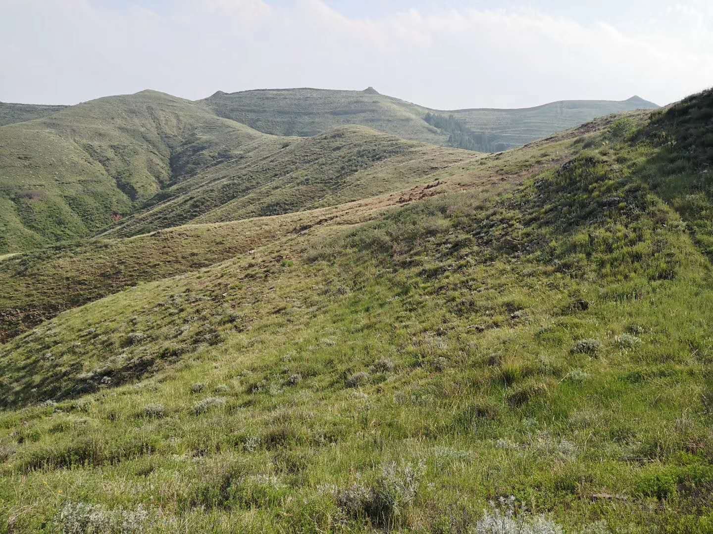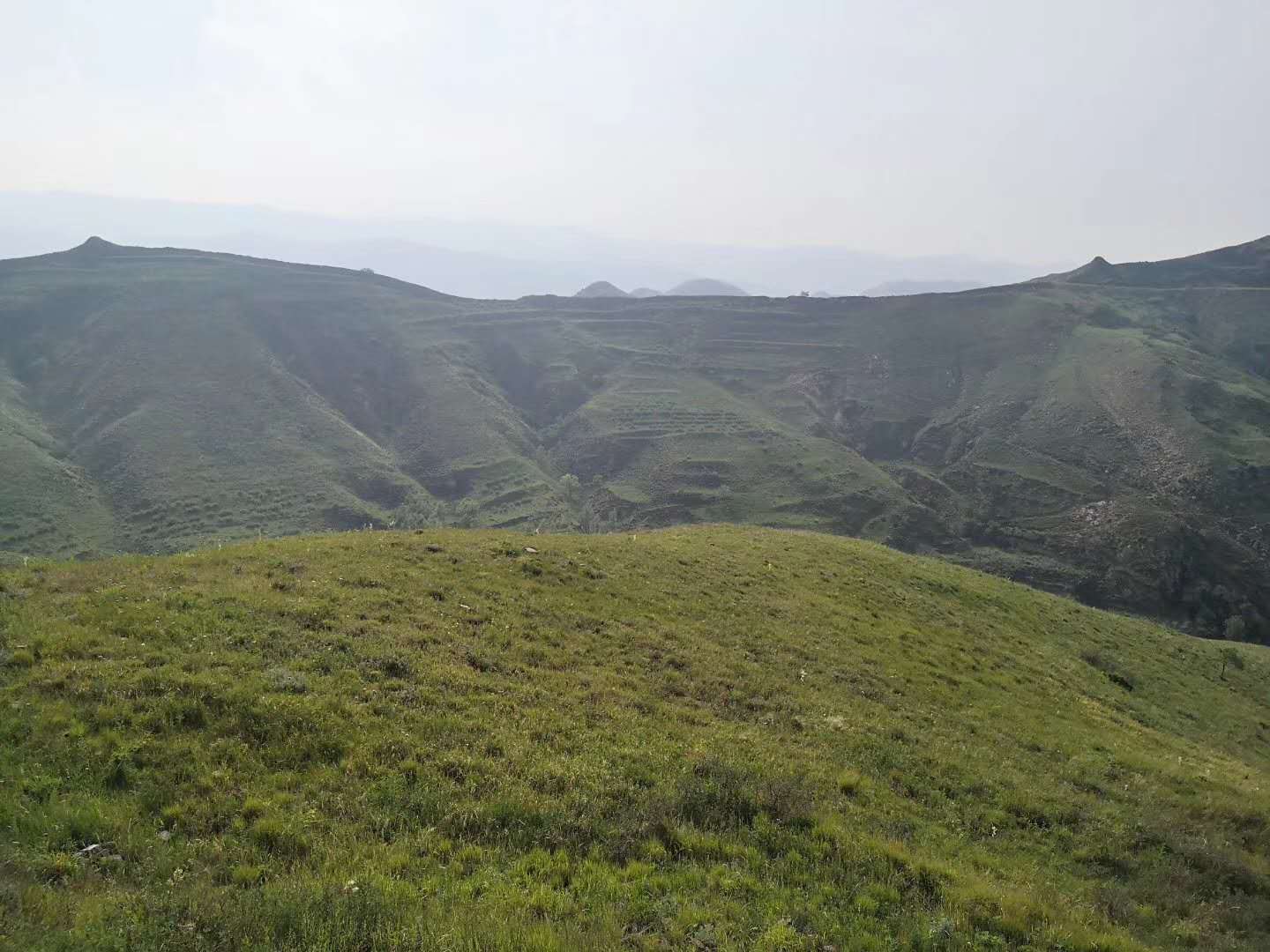 如下圖,最遠(yuǎn)處的谷底就是我停車的地方,直線爬上來四公里左右,請了一位養(yǎng)牛的老人當(dāng)向?qū)?,大約一個(gè)多小時(shí),爬很快,上山時(shí)衣服全部濕透。